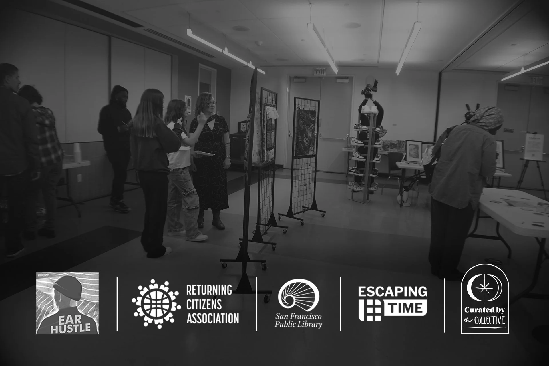 Escaping Time partnered with the San Francisco Public Library, the Sacramento Public Library, Ear Hustle Podcast, the Returning Citizens Association, and Curated by the Collective to put on a one-day Exhibition and book fair at the libraries.